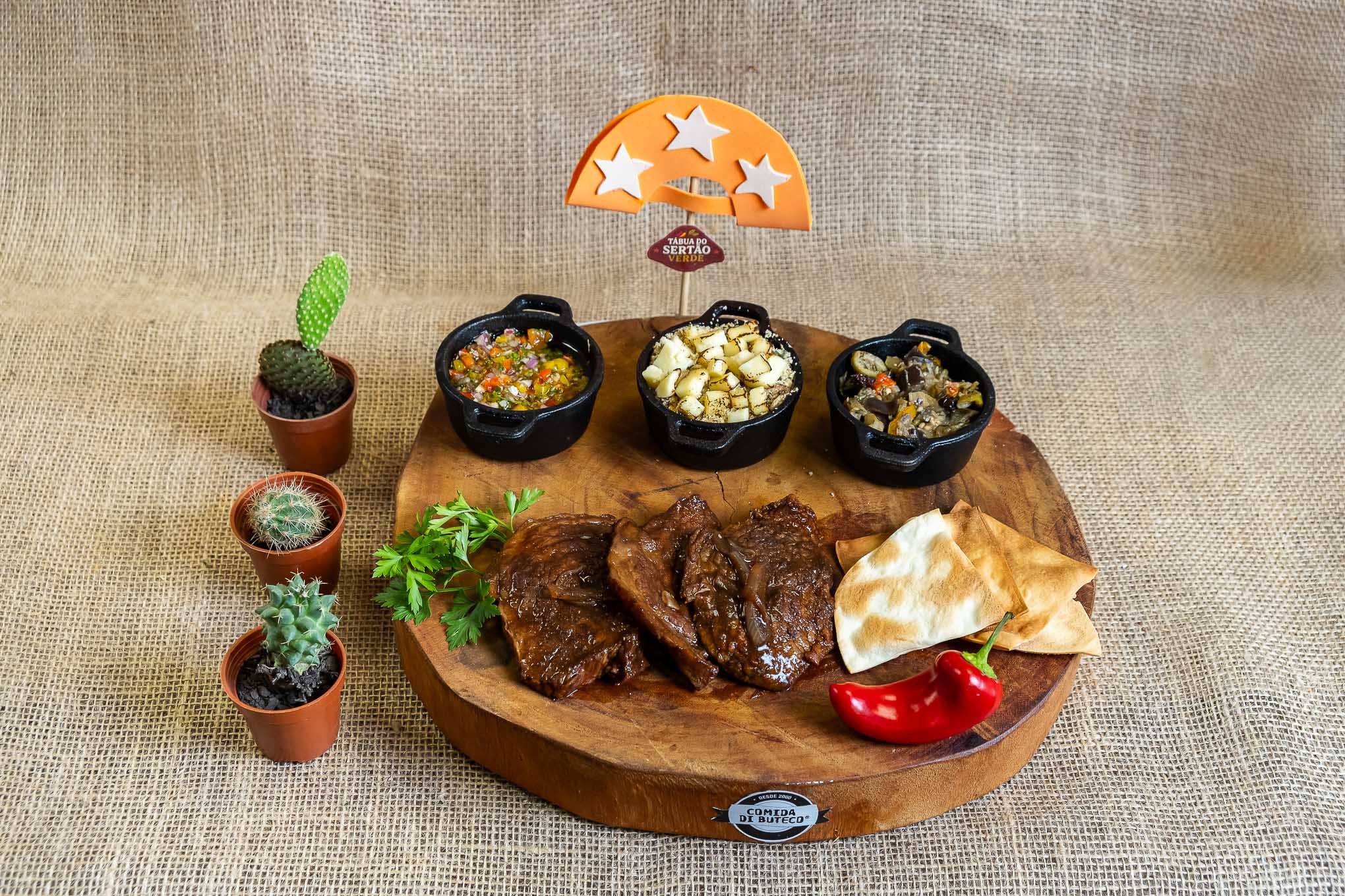 Mineirando na Bahia Carne nordestina, servida com farofa d’água, cebolete, geleia de rubras, pão e molho da casa.