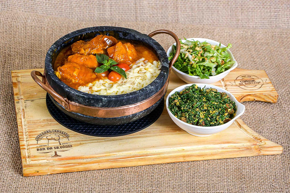 Õ trem bão, sô Maçã de peito com mandioquinha e torradas de pão francês.