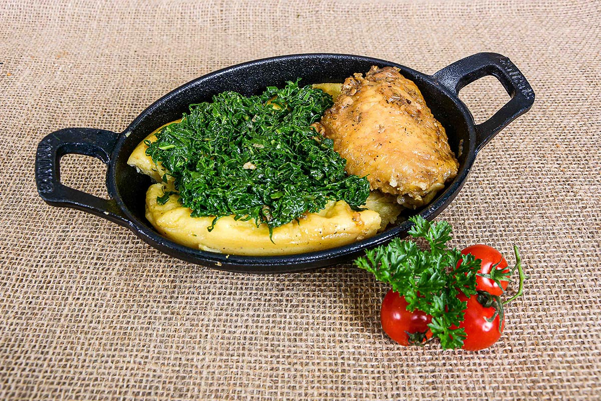 Bolinho de prata Bolinho de feijoada na cama de couve crispy.