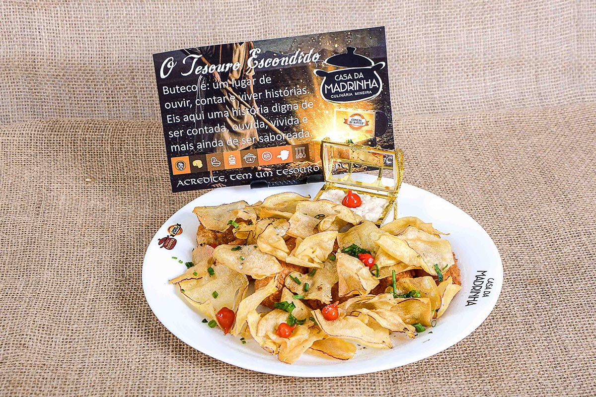 Bem Mineiro Polenta crocante com ragu de frango com quiabo e o toque inconfundível do queijo minas.