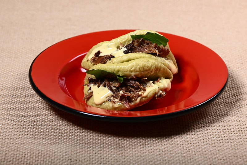 Mururé Tartar de Pirarucu defumado com molho agridoce de manga e bananas-da-terra fritas e amassadas.