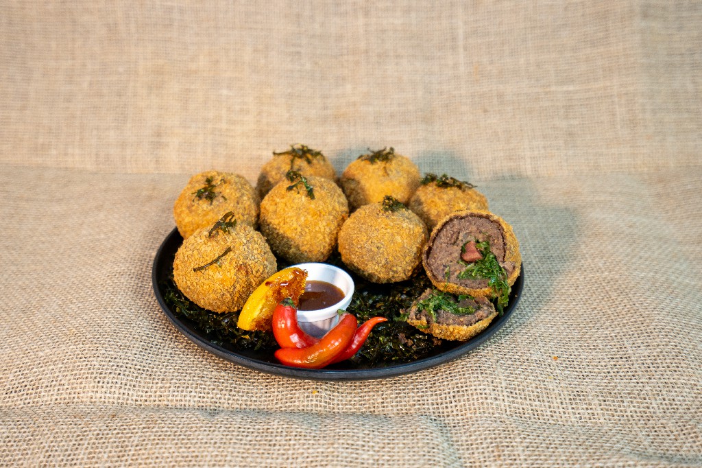 Bolinho de feijoada Bolinho de feijoada com geleia de laranja com pimenta.