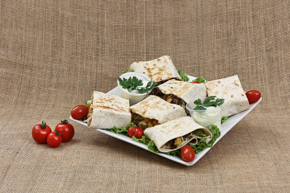 Tortilha do Dovah Massas de shawarma fritas. Acompanha costela, maionese, creme de alho, vinagrete e barbecue.