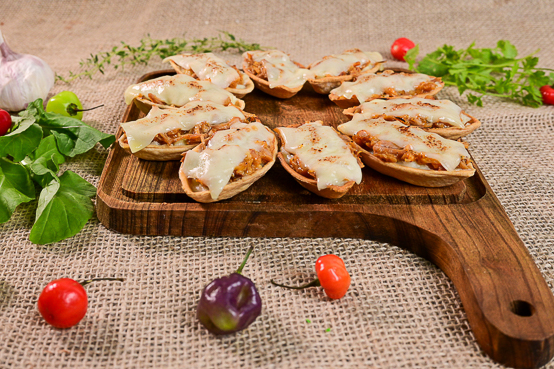 Bolinho atropelado Bolinho de mandioca com costela desfiada recheado com queijo.
