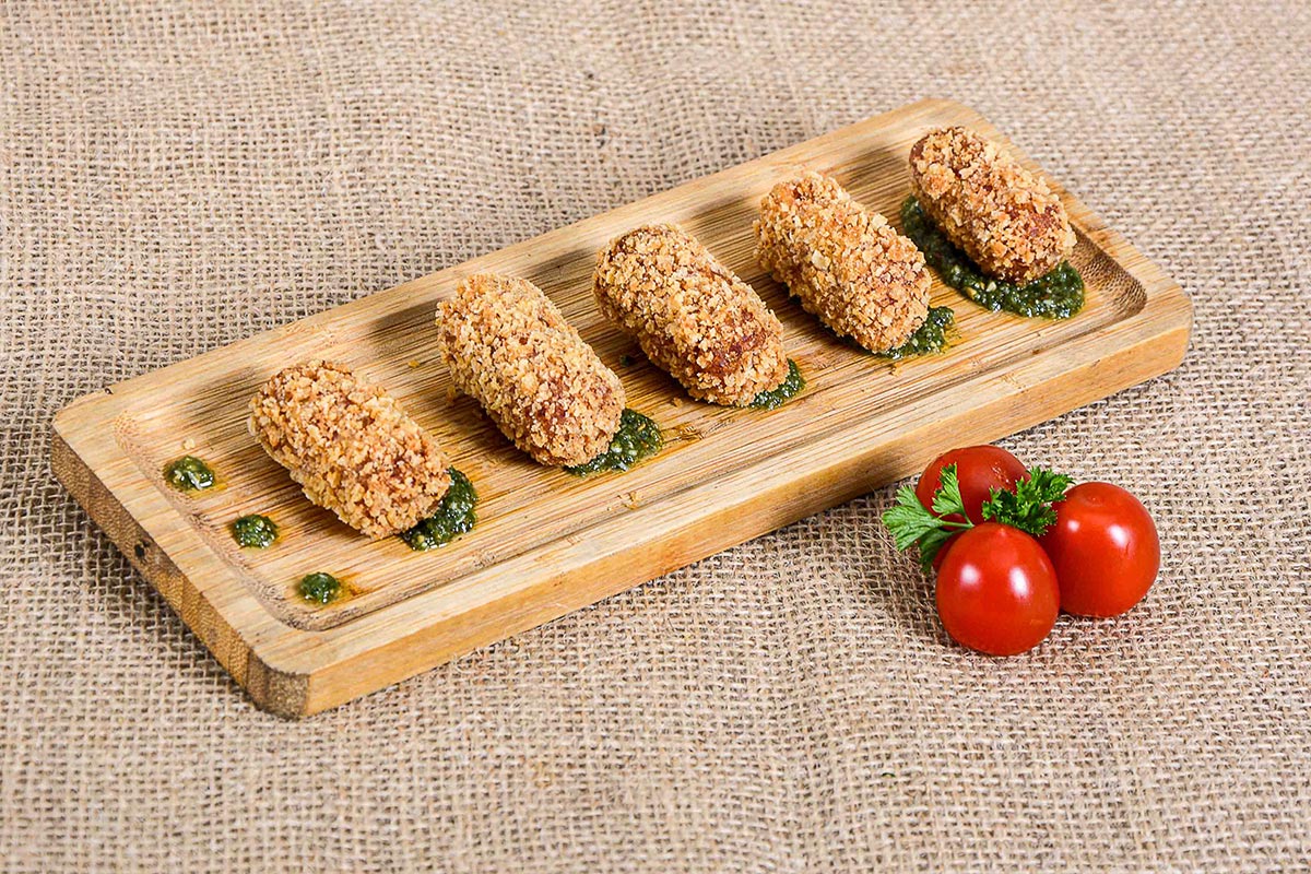 Músculo de boi confitado acompanhado de pão artesanal.
