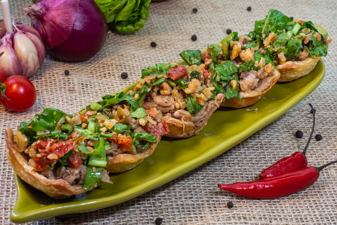 Gorgonozes Minissalgados de massa de cabotiá com recheio de queijo gorgonzola, queijo muçarela e nozes.