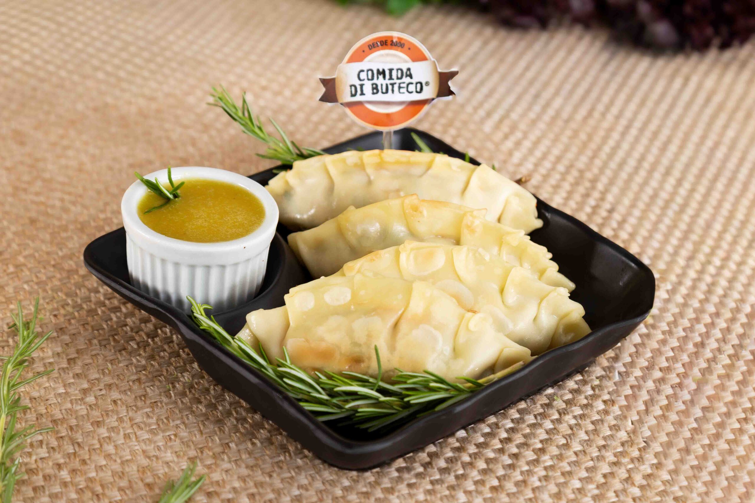 Extouro Massa crocante assada, costela de boi desfiada, agrião, molho aligot gratidão com uma boa pimenta da casa picante.