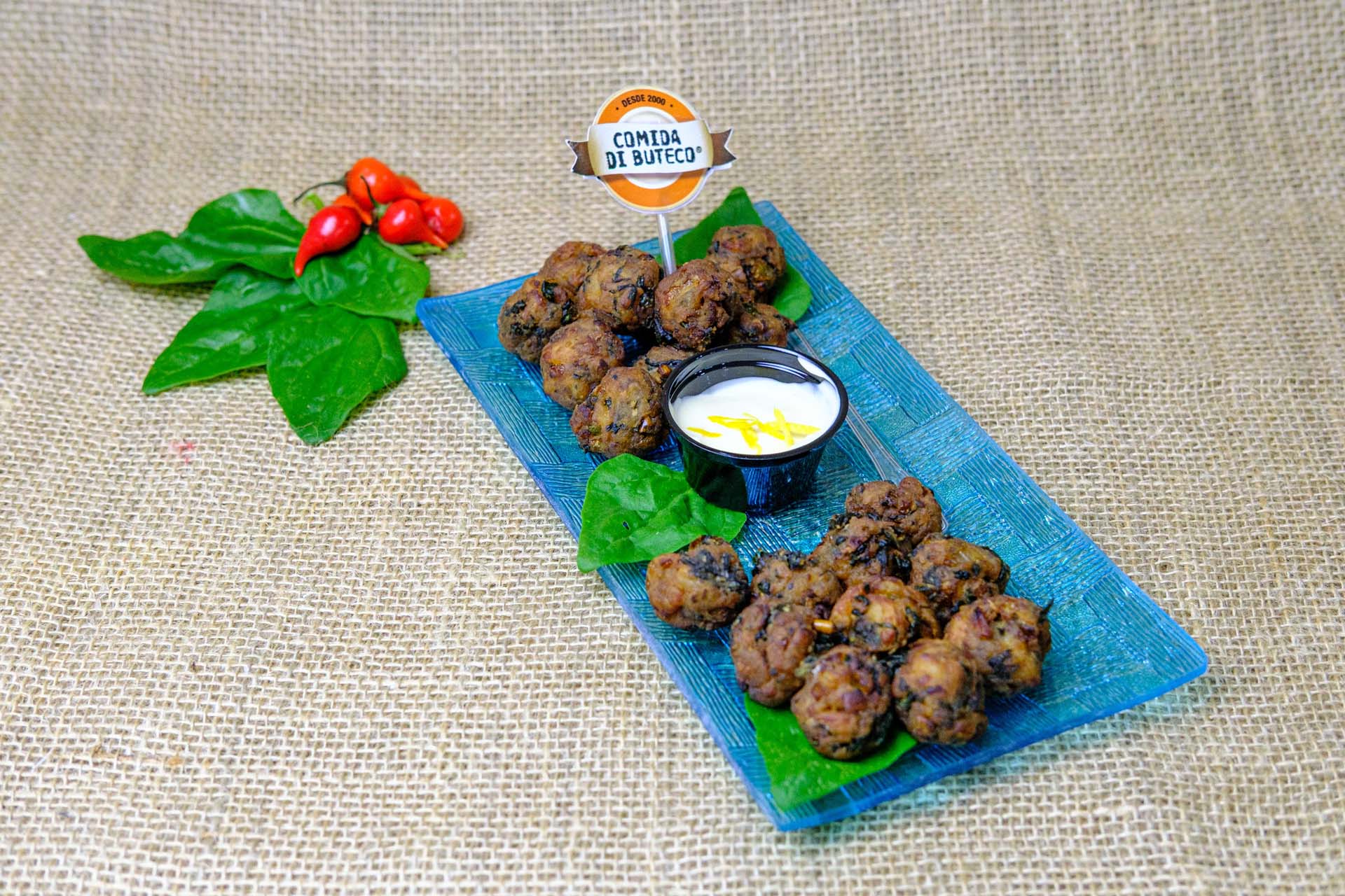 Carne de sol na chapa com mandioca crocante, cebola marinada na manteiga de garrafa com molho de 3 queijos.