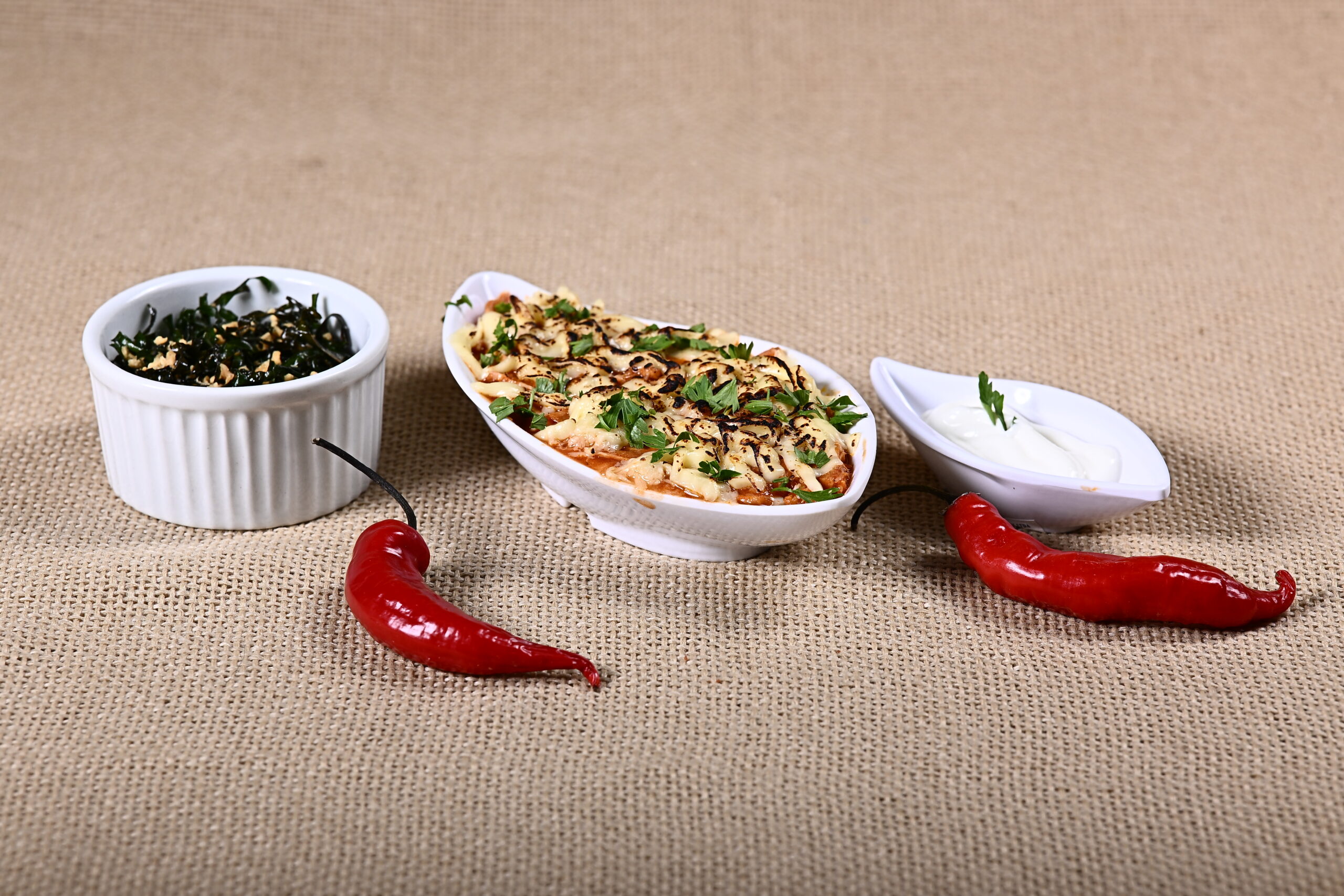 Bolinho de pato Pileque Bolinho de pato com queijo do marajó, crispy de jambu e veloute de tucupi.