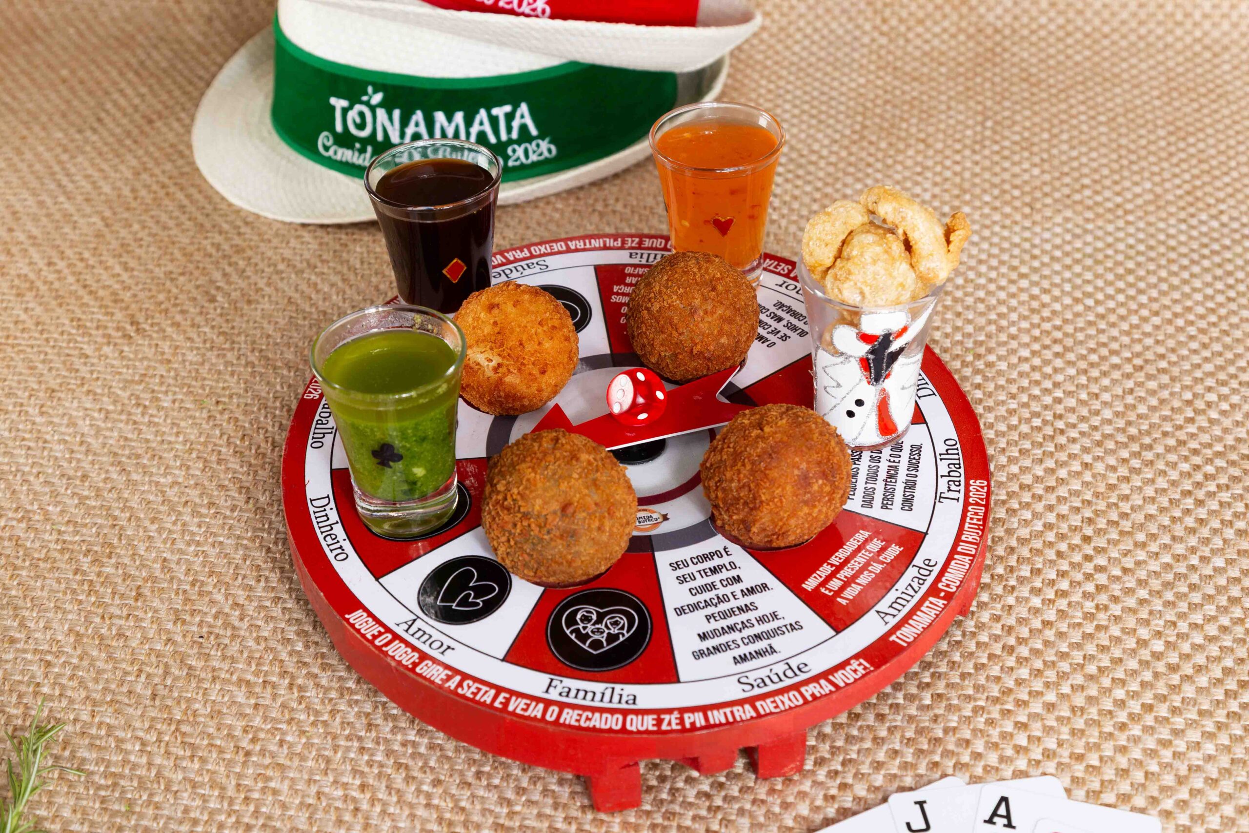 Saberes e Sabores de um BRASIL Plural – Uma grande homenagem aos 25 anos do Comida Di Buteco em uma VIAGEM pelo BRASIL. 5 tipos de bolinhos, representando as regiões do Brasil: Norte – bolinho de pato com geleia de tucupi; Nordeste – bolinho moqueca baiana de frutos do mar com molho de pimenta; Centro-Oeste – bolinho de baião de dois com queijo coalho; Sudeste – bolinho de jiló com linguiça mineira com chutney de goiabada; Sul – bolinho de arroz carreteiro com ragu de costela defumada.