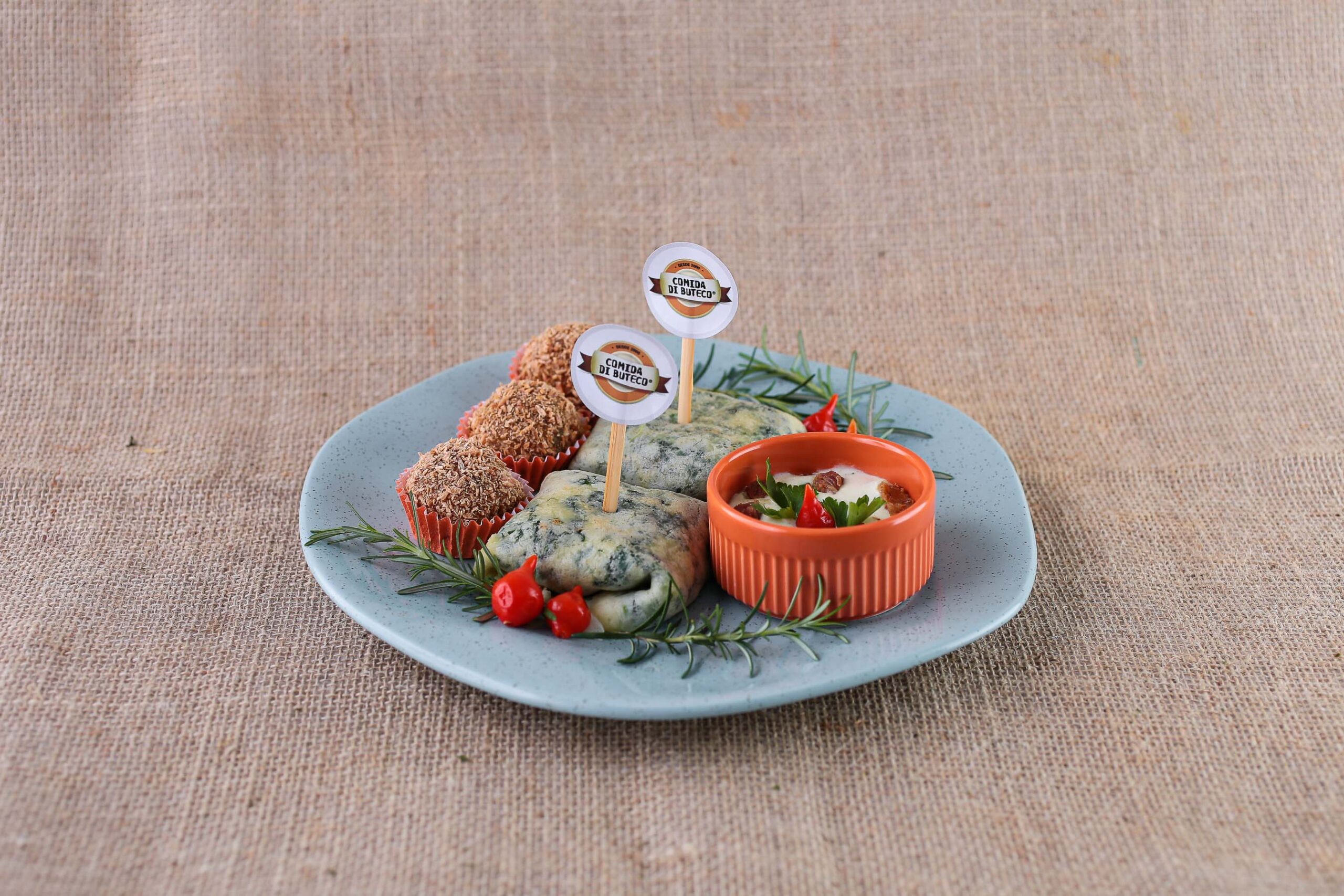 Crepinafre Crepioca recheada de espinafre, queijo e bacon. Para finalizar, um brigadeiro de abóbora com coco. Acompanha molho de espinafre com queijo.